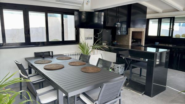 AlegrÃa is pleased to present this magnificent property: an independent villa with a private pool and a large plot (980 m), completely renovated (in 2020), in the new Nou Nazaret expansion area, in San Juan de Alicante.~~The house has 360 m distributed over 3 floors:~Floor 0: spacious and bright living room + large dining room in front of the open-plan kitchen equipped with all its appliances + a bedroom/office + a full bathroom + laundry/gallery area, from which you can access the covered garage of approximately 50 m.~Floor 1: the entire rest area, with 4 double bedrooms (one of them is the master suite that has a large dressing room) + 2 full bathrooms (one of them en suite)~Basement floor: a multifunctional space where they currently have a soundproofed cinema room with natural light and ventilation (window) + a large storage room.~~The property is completed by 980 m2 surrounding the house + a huge private pool + a barbecue of about 50 m2 + a bathroom.~~Recently completely renovated (2020) it has a memory of luxury qualities:~.- Home automation (the property can be completely controlled from your mobile phone)~.- Gas radiators + Air conditioning, with the comfort of airzone per room~.- Motorized awnings~,. Perimeter alarm~.- Drip irrigation in the garden area~.- Electric charger for the car~~If you are looking for a special property to turn into your new home, this may be the occasion.~