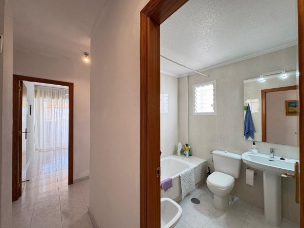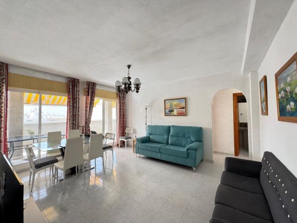 Spacious penthouse for sale on Avenida de las Habaneras, the main avenue of Torrevieja.~~The property has a total area of 103 m² (usable — 80 m²) and includes:~•3 bedrooms,~•2 bathrooms,~•large living room,~•kitchen,~•big terrace of 23 m² with lateral sea views.~~✅ Garage space included in the price.~✅ Sold fully furnished and with appliances, as shown in the photos.~✅ Enjoy stunning lateral views of the central promenade of the city.~~📍 Distance to the central promenade — only 350 meters.~🏗 Year of construction — 1995.~~A spacious penthouse in the heart of Torrevieja — perfect for living close to the sea or as an investment.~
