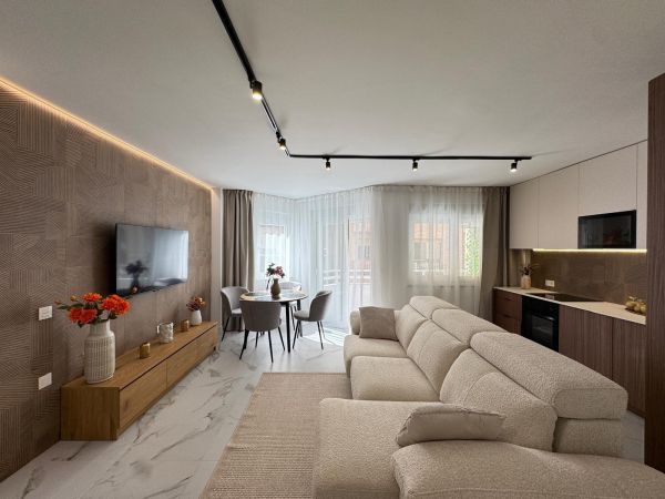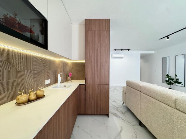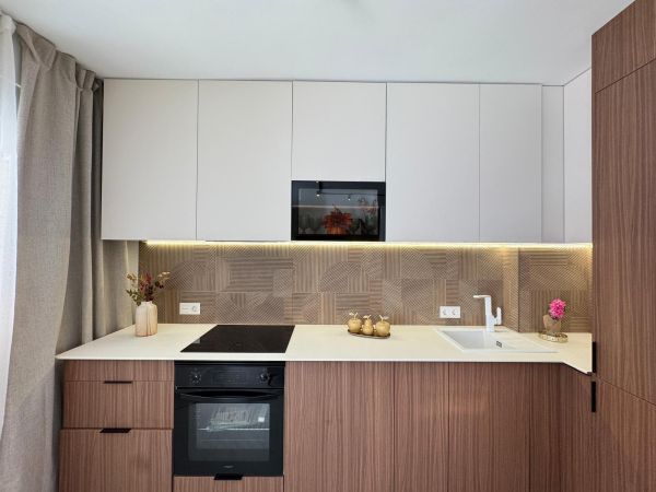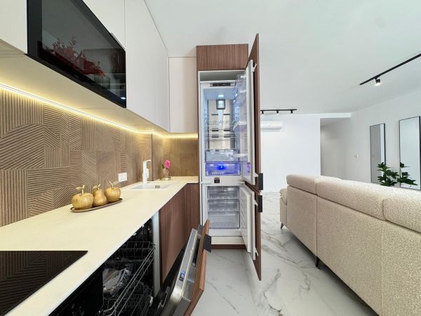 Balcony~๐ First floor with elevator~~โจ Newly completed comprehensive renovation, which includes:~โข New, modern, high-quality doors~โข Completely renewed electrical and plumbing installations~โข New bathrooms with contemporary materials~โข Walls and ceilings painted in neutral tones~โข New porcelain stoneware flooring~โข New modern-style kitchen with integrated state-of-the-art appliances:~โข Dishwasher~โข Oven~โข Induction cooktop~โข Extractor hood~โข Microwave~โข Air conditioning for an ideal climate throughout the home~~๐ Sold with all new furniture and appliances as shown in the photos. The furnishings are modern, functional, and complemented with decorative elements that create a cozy atmosphere.~~๐ก Everything absolutely new! Ideal for those looking to live in a modern apartment, with current design and no need for renovations.~