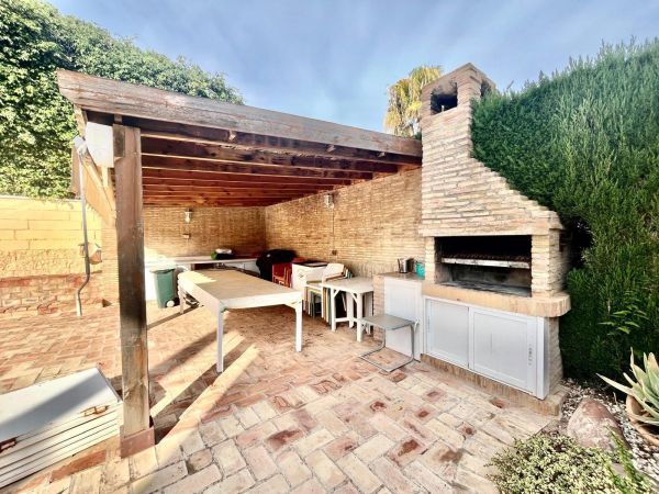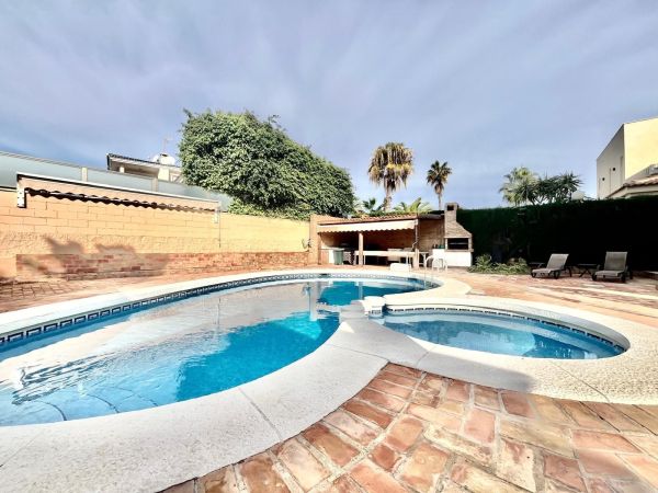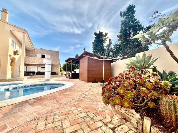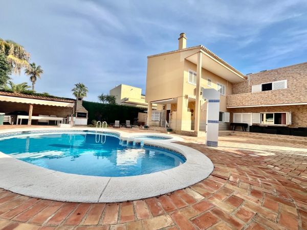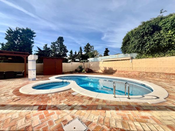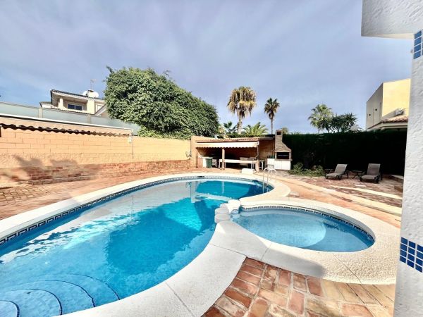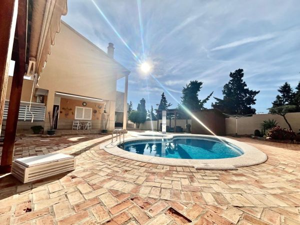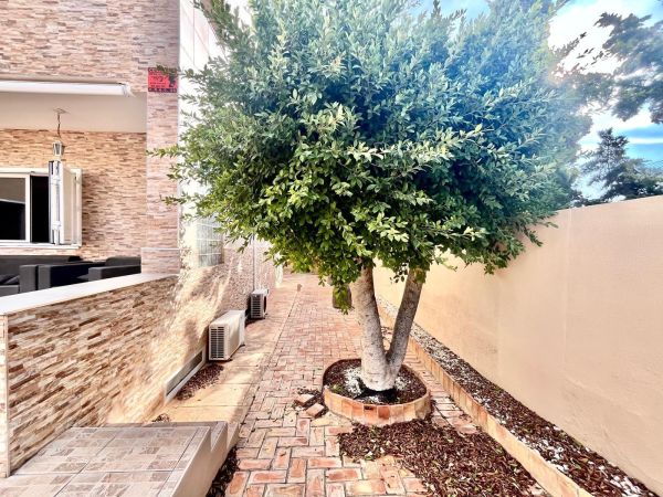 This stunning villa sits on a 780 m² plot surrounded by trees, offering privacy and a unique natural setting just steps from the sea. With a prime location close to all amenities, high-quality restaurants, and leisure areas, it's the ideal place to enjoy the authentic Mediterranean lifestyle.~~The house is distributed over three floors. On the ground floor, there is a spacious and bright living room, a fully equipped independent kitchen, a bedroom, and a full bathroom. The first floor comprises three bedrooms and two bathrooms, one of which is en suite, with access to private terraces where you can enjoy the sea breeze. The semi-basement level features a large games and party area with a bathroom, perfect for family gatherings or get-togethers with friends, as well as a spacious garage with room for four cars.~~The property boasts a remarkable outdoor area with a private saltwater swimming pool, surrounded by a relaxation area and a barbecue area, ideal for enjoying the outdoors year-round. The villa is equipped with solar panels that supply energy to the entire house, ensuring high energy efficiency and significant savings on consumption. It also has gas heating, providing complete comfort in any season.~~This property combines luxury, sustainability, and comfort in an unbeatable setting, just steps from the renowned La Mata Beach, one of the longest and most highly regarded beaches on the Costa Blanca, awarded the Blue Flag for the quality of its waters and services. Furthermore, it has a holiday rental license, making it an excellent opportunity both as a permanent or holiday residence, and as an investment with guaranteed high returns.~~An exclusive villa in a prime location, offering everything you need to enjoy the sea, sun, and luxury in the heart of Torrevieja.~~~