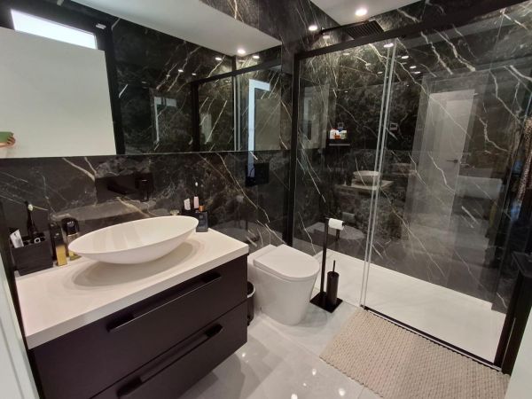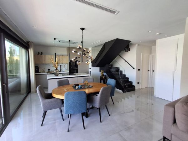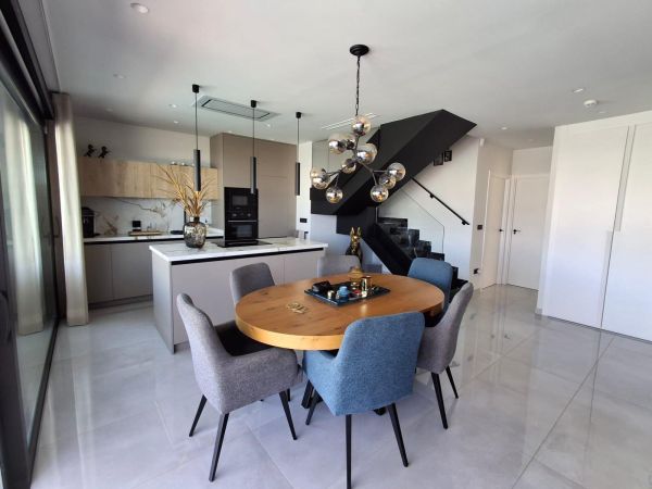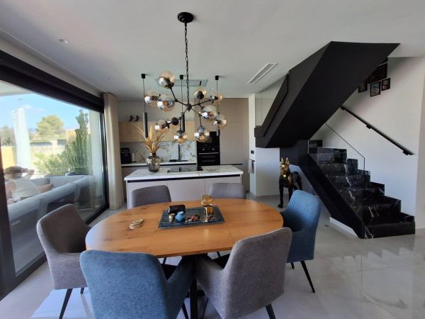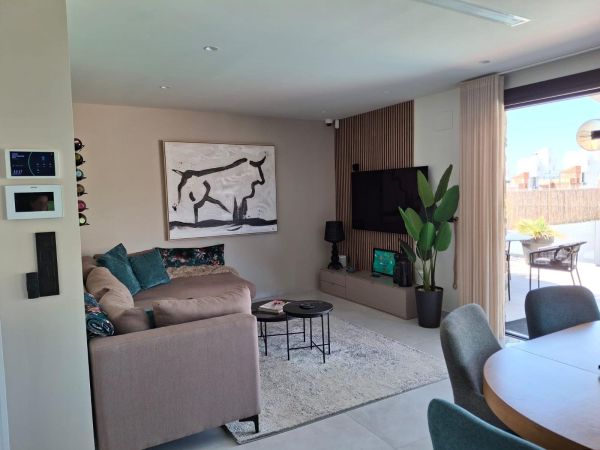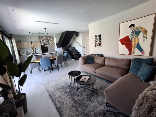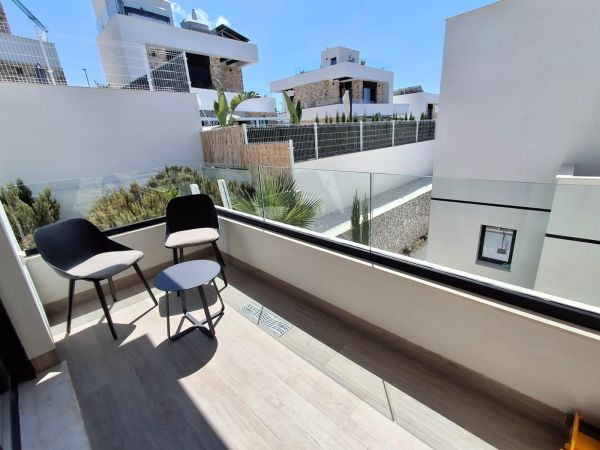 Where Elegance Meets Comfort 🌟~~We present to you a real estate gem: an independent, modern, and nearly new villa, designed with the highest quality materials and decorated with exquisite taste. A dream home where every corner is designed to surprise you.~~With 2 floors plus a solarium, this exclusive property features 3 spacious bedrooms and 3 designer Italian bathrooms, two of which have private terraces so you can wake up every day to open views of the sea and mountains. The bright living room and elegant kitchen, equipped with state-of-the-art appliances, integrate with the exterior, creating a perfect environment for living and enjoying.~~Outside, a spectacular garden filled with palm trees, flowers, and green areas surrounds a heated saltwater pool with a cover, ideal for enjoying all year round. The large terrace is perfect for gatherings, dinners under the stars, or simply relaxing in your own private paradise.~~✨ Premium Features that Make a Difference:~~- Mitsubishi Slim air conditioning~- Solar panels with hybrid inverter~- Water softener~- Integrated alarm with indoor and outdoor cameras~- Electric shutters~- Dimmable interior and exterior lighting~- 8 m² storage shed made of concrete and wood~- Heated saltwater pool with cover~- All furniture, curtains, washing machine, dryer, and part of the outdoor furniture included~~Located in Balcon de Finestrat, a step away from Puig Campana Golf, close to shopping centers, services, restaurants, and with quick access to the Alicante highway, this villa is more than a house… it’s a lifestyle.~A home where quality, design, and location come together to create an exceptional property.~