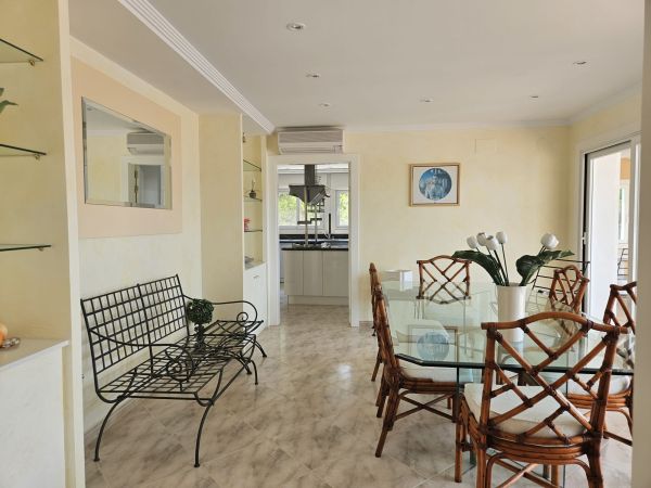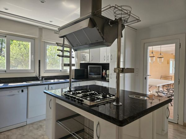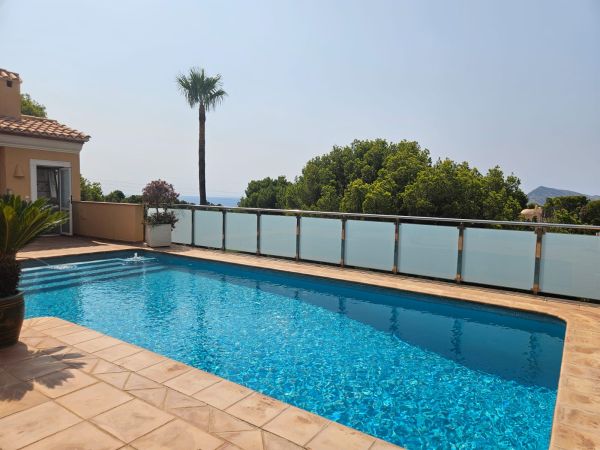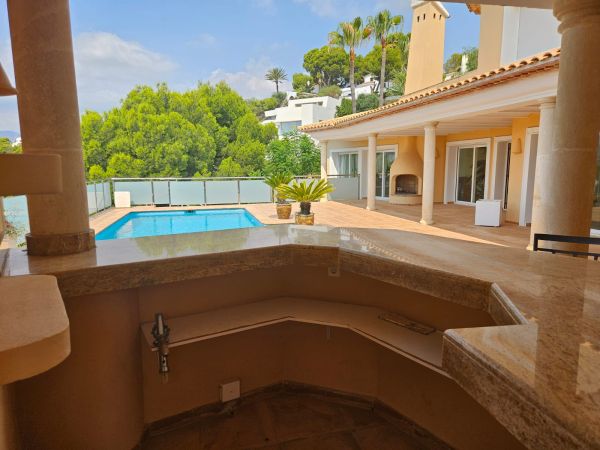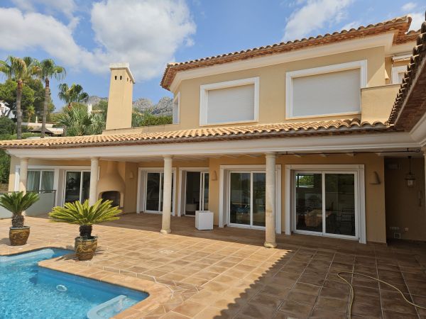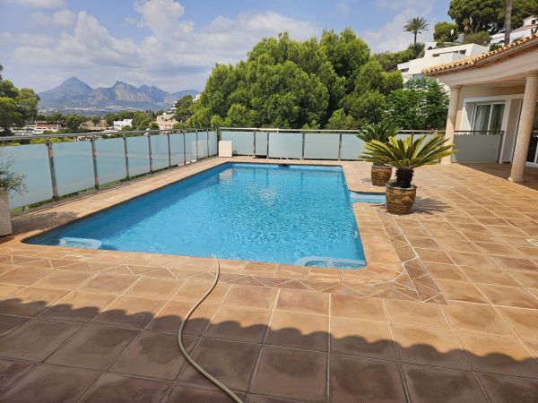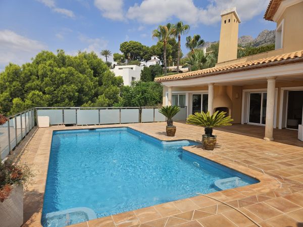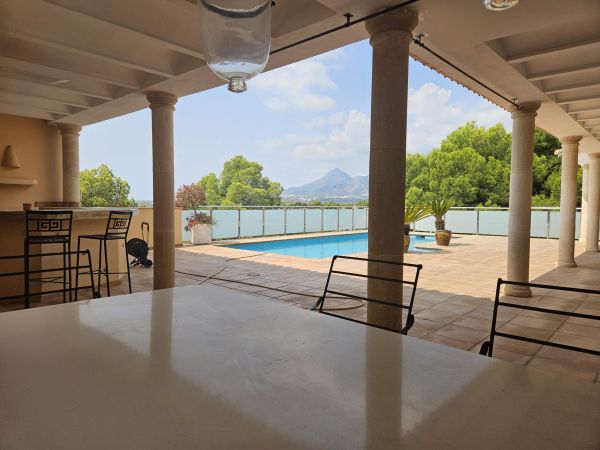 Luxury 2 story country house in Altea (Alicante), just 7 minutes from the beach, with mountain views. Spectacular luxury country house near the golf course, with 500m² living space, 3 bedrooms, 4 bathrooms, a large living room with chimney, a spectacular kitchen, a storage room, a large terrace and a roof terrace. The house has air conditioning and central heating. The fenced 1400m² plot features a large pool with stunning views of the mountains and the golf course. There's also a barbecue, a summer kitchen, a garage and a small guest house. The house is located in a very quiet area, just 5 minutes from the city and 40 minutes from Alicante Airport.Details: 3 bedrooms, 4 bathrooms, 500m² living space, 1400m² fenced plot, garden, private pool, terrace, roof terrace, garage, central heating, air conditioning, summer kitchen, chimney, storage room