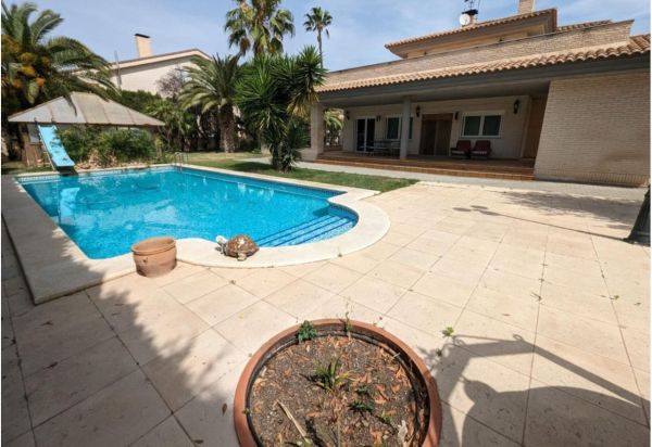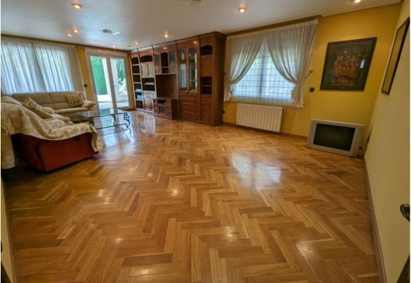 Magnificent detached villa in Elda, ready to move into, located in an excellent area that perfectly combines tranquility with proximity to all amenities. The property offers 450 m² built (410 m² usable) on a 1,292 m² plot, distributed over three floors designed for space and comfort. It features 4 bedrooms and 4 bathrooms, perfectly arranged to provide privacy and convenience. The semi-basement, approximately 200 m², includes a spacious open-plan living area with kitchen and fireplace, a full bathroom, and a large garage with space for more than four vehicles. The ground floor, 137 m², has a bright living room with direct access to the garden, a kitchen also with outdoor access, a utility room, a full bathroom with bathtub, a master bedroom with en-suite bathroom featuring a hydromassage shower and fitted wardrobes, and an additional single bedroom. On the upper floor, 53 m², there are two further bedroomsâone double and one with fitted wardrobesâand a full bathroom. Outside, the villa offers a private swimming pool, a jacuzzi area, and a separate 34 m² building with barbecue, bathroom, and storage room, perfect for enjoying the outdoors. Additional features include an automatic entrance gate, oil central heating, ducted air conditioning, electric shutters, and built-in sound system, ensuring maximum comfort throughout the home. Located just 5 minutes from the town center, 30 minutes from the airport, and 35 minutes from the beach, this property is an excellent opportunity as a spacious family home, ready to enjoy.